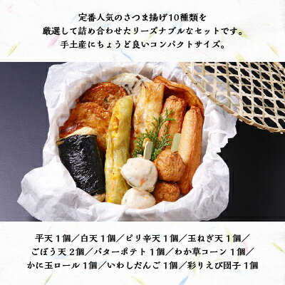 Item Information 名称 さつま揚げ 魚万 手土産セット 11個(10種類) 内容量 平天 1個/白天 1個/ピリ辛天 1個/玉ねぎ天 1個/ごぼう天 2個 バターポテト 1個/わか草コーン 1個/かに玉ロール 1個 いわしだんご 1個/彩りえび団子 1個 保存方法 冷蔵保存 発送元 魚万 奈良市餅飯殿町16 生産国 日本 賞味期限 製造日より5日 配送・送料について 配送について クール便にて発送 送料について ナラノコトの商品は奈良県にある各お店より発送いたします。